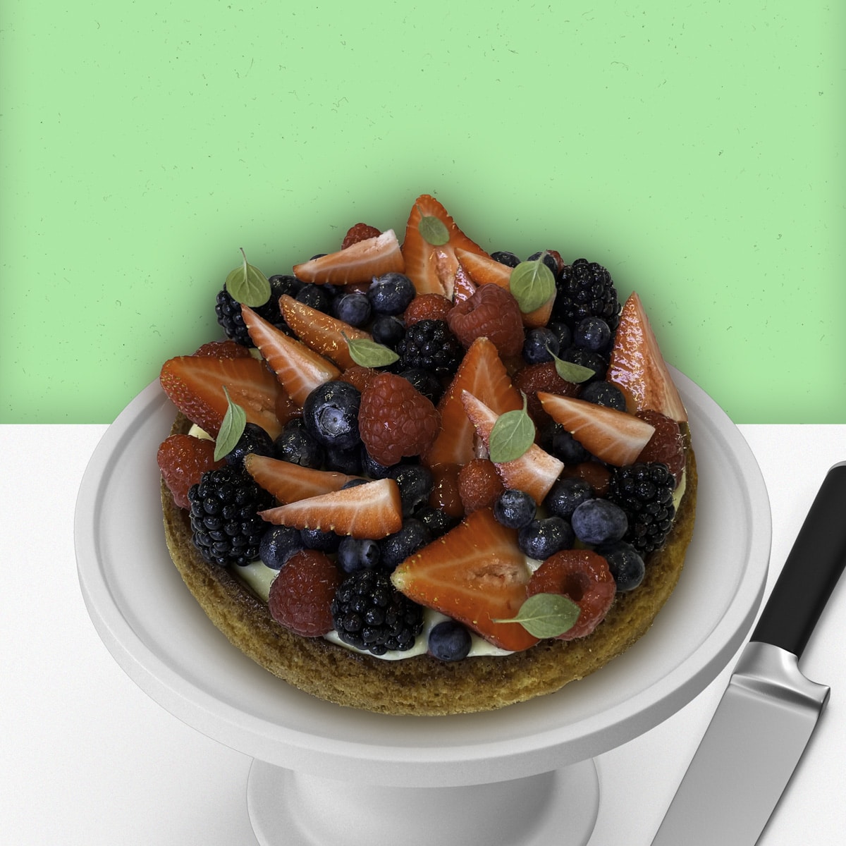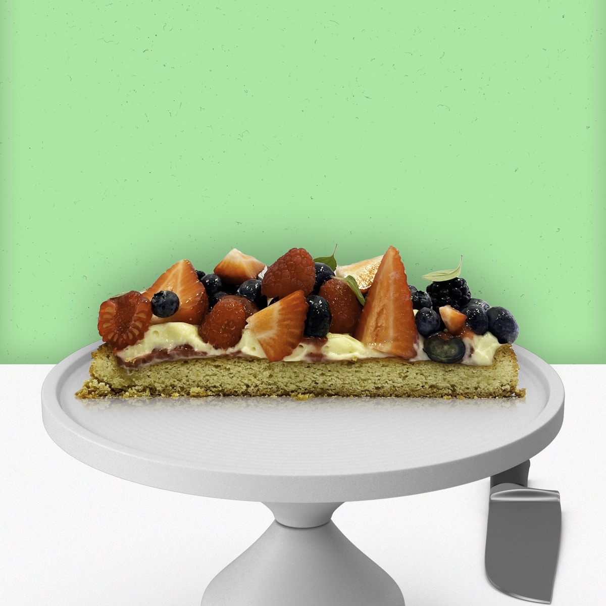 Our seasonal fruit tart is constructed on a light, Breton dough, which is turn filled with pastry cream and a delicious stawberry gel.