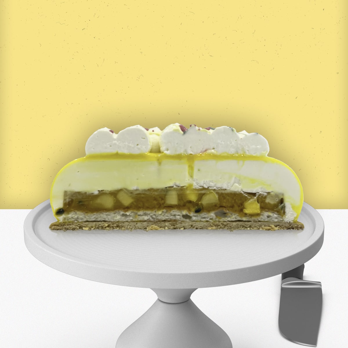 A bright cake with brighter ingredients, the primary flavours in this cake are mango and passionfruit.